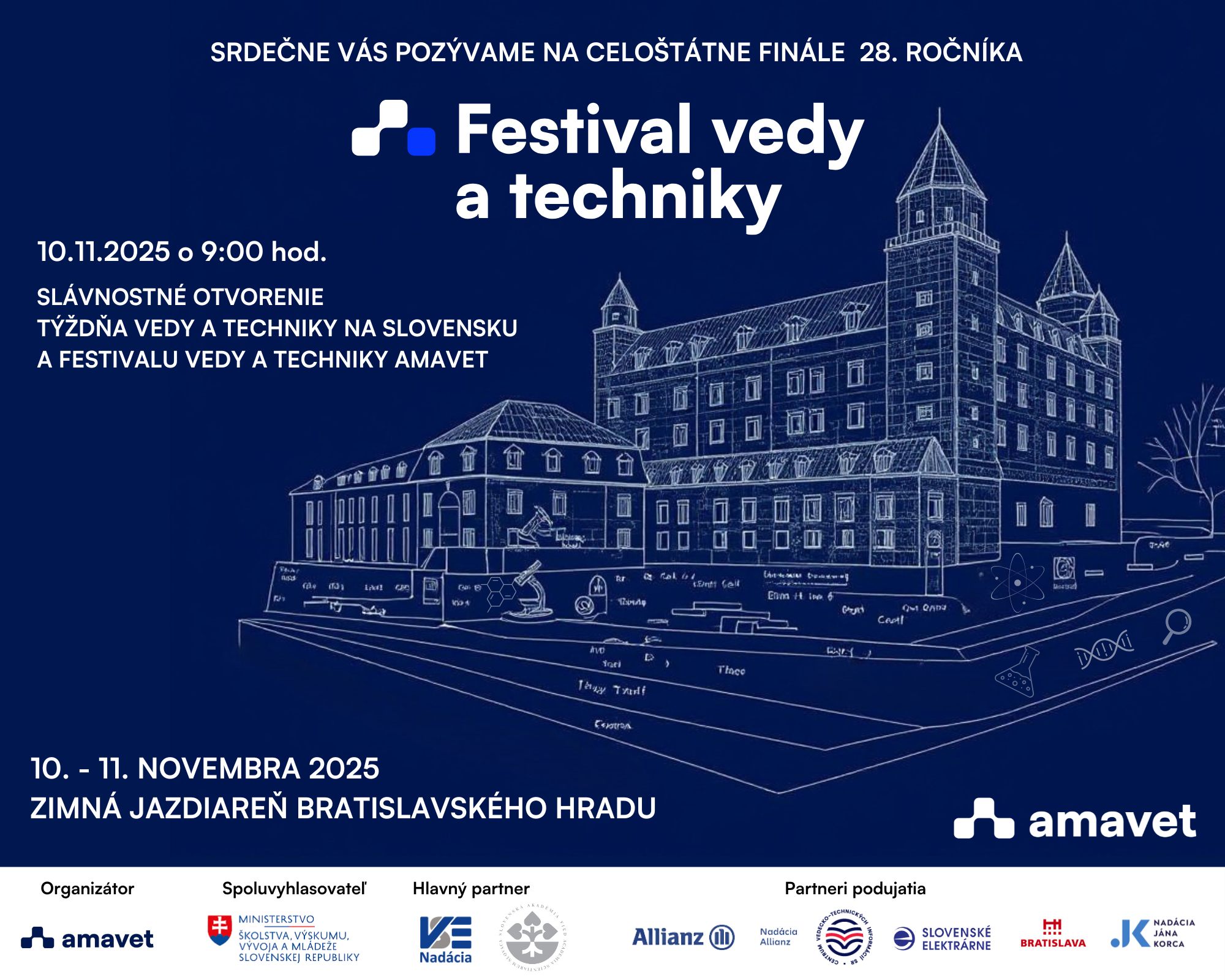Slávnostné otvorenie Týždňa vedy a techniky 2025 (TVT) sa uskutoční súčasne s otvorením Festivalu vedy a techniky (FVaT) v spolupráci s dlhoročným partnerom AMAVET na Bratislavskom hrade, kde sa stretnú odborníci ako aj nadšenci vedy.