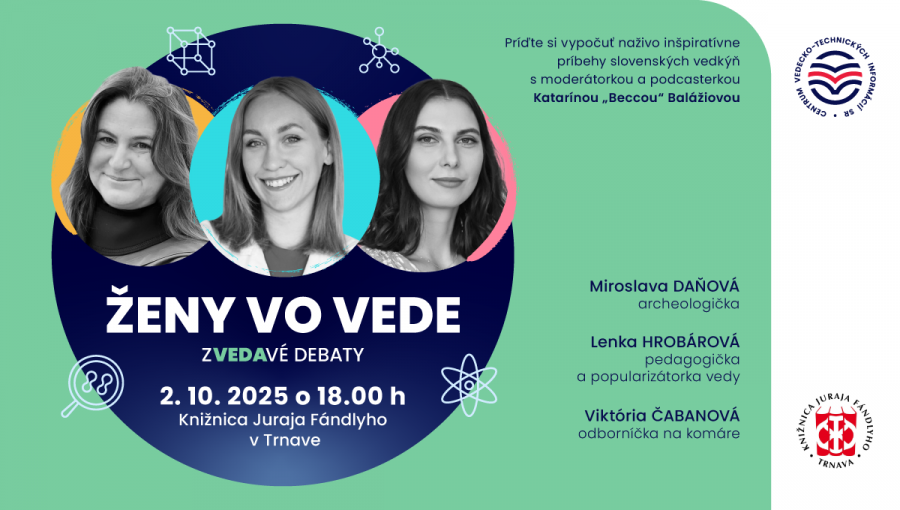 Po letnej prestávke pokračujeme v sérii Zvedavé debaty a opäť sa stretávame v priestoroch krajských knižníc, tentoraz v Trnave. Diskusie so špičkovými slovenskými vedkyňami ponúkajú verejnosti pohľad do zákulisia vedeckého sveta: ako prebieha výskum, čo všetko môže byť jeho predmetom a ako vyzerá samotný vedecký proces.